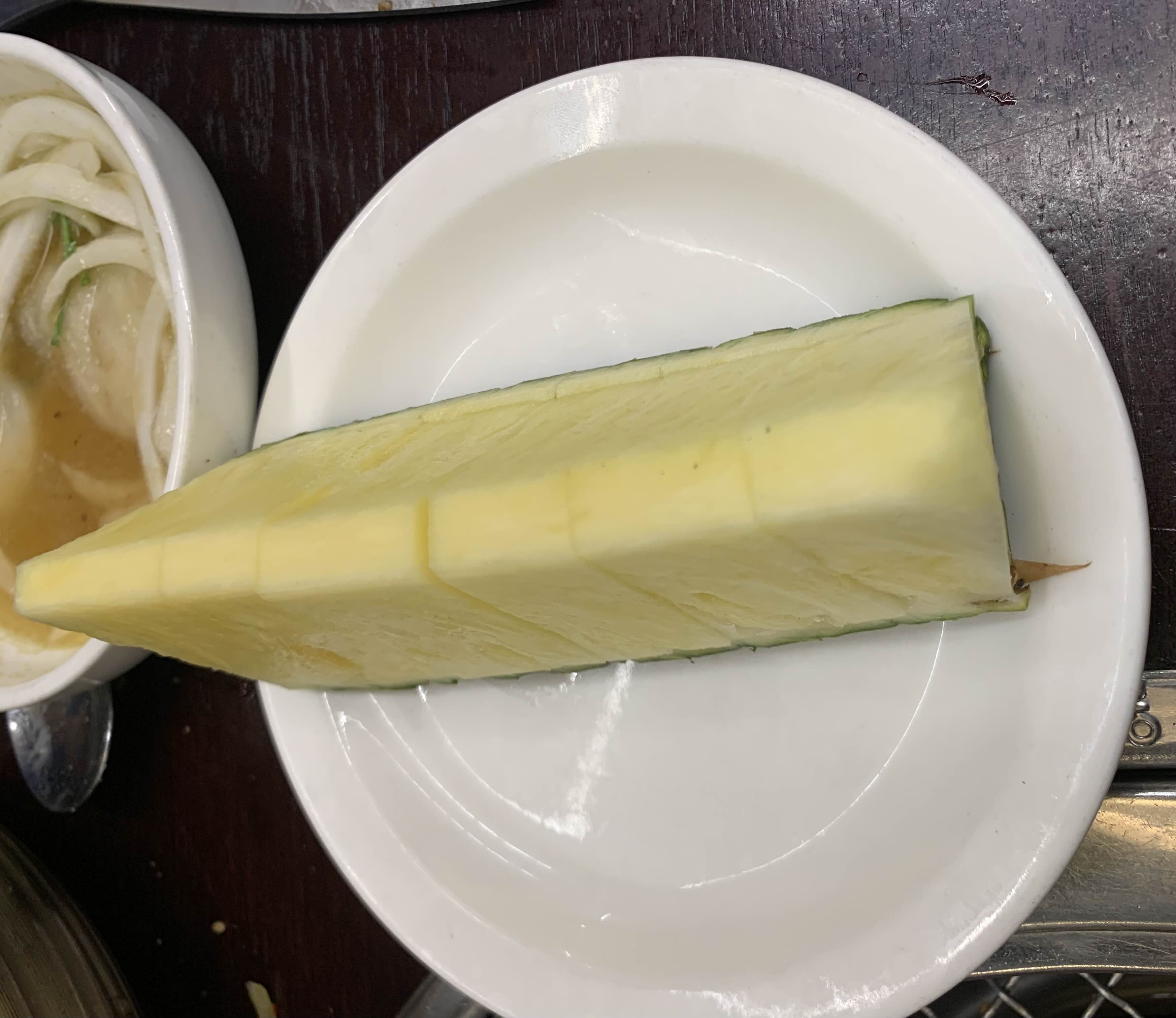 후식으로 파인애플이 제공되고, 커피와 소프트아이스크림도 있어서 풍성한 후식입니다.