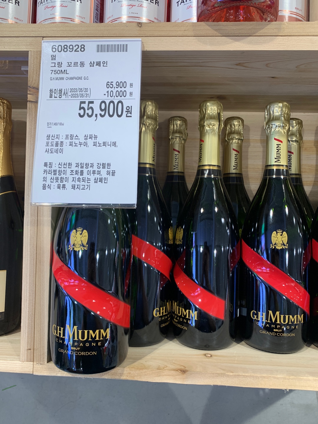 고민하다가 멈 그랑 꼬르동 샴페인으로 선택했습니다. 인터넷에 대략 검색해 보니 약 8만 원대에 주로 팔리는 와인인 듯합니다.