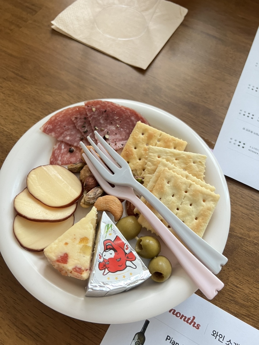 대부분 와인 맛을 해치지 않고, 가볍게 입가심을 하기에 좋은 견과류와 크래커 위주였다.
