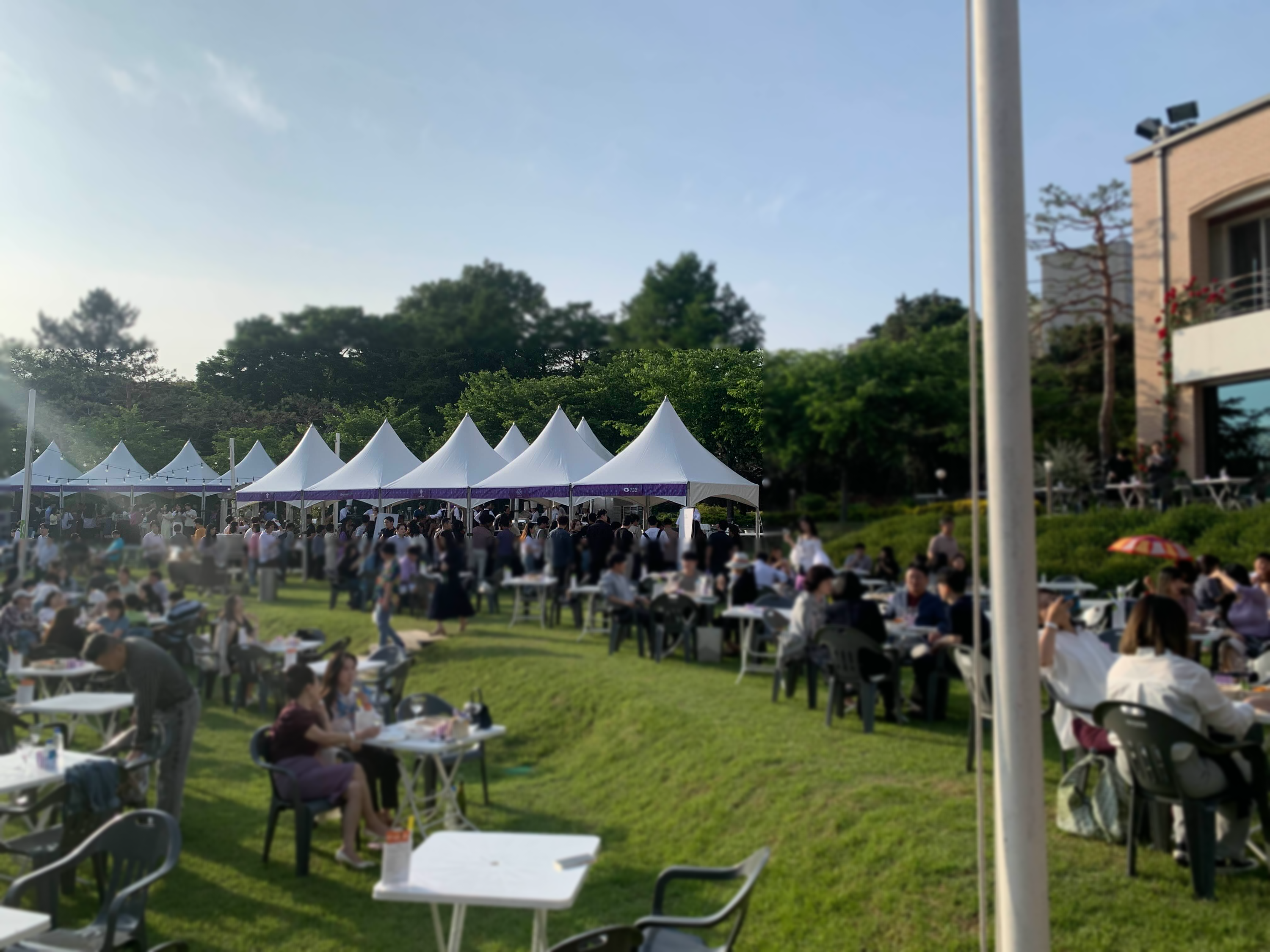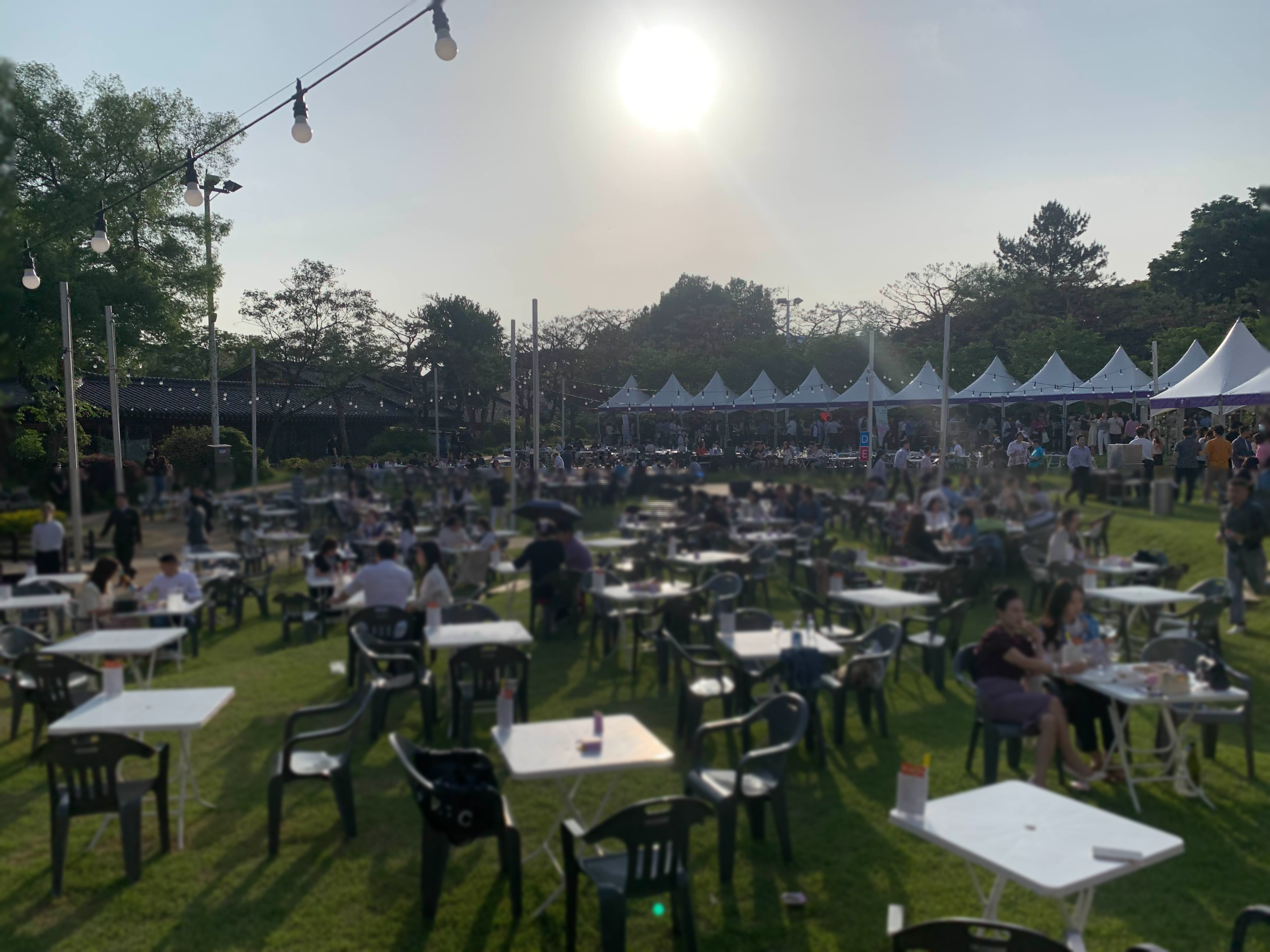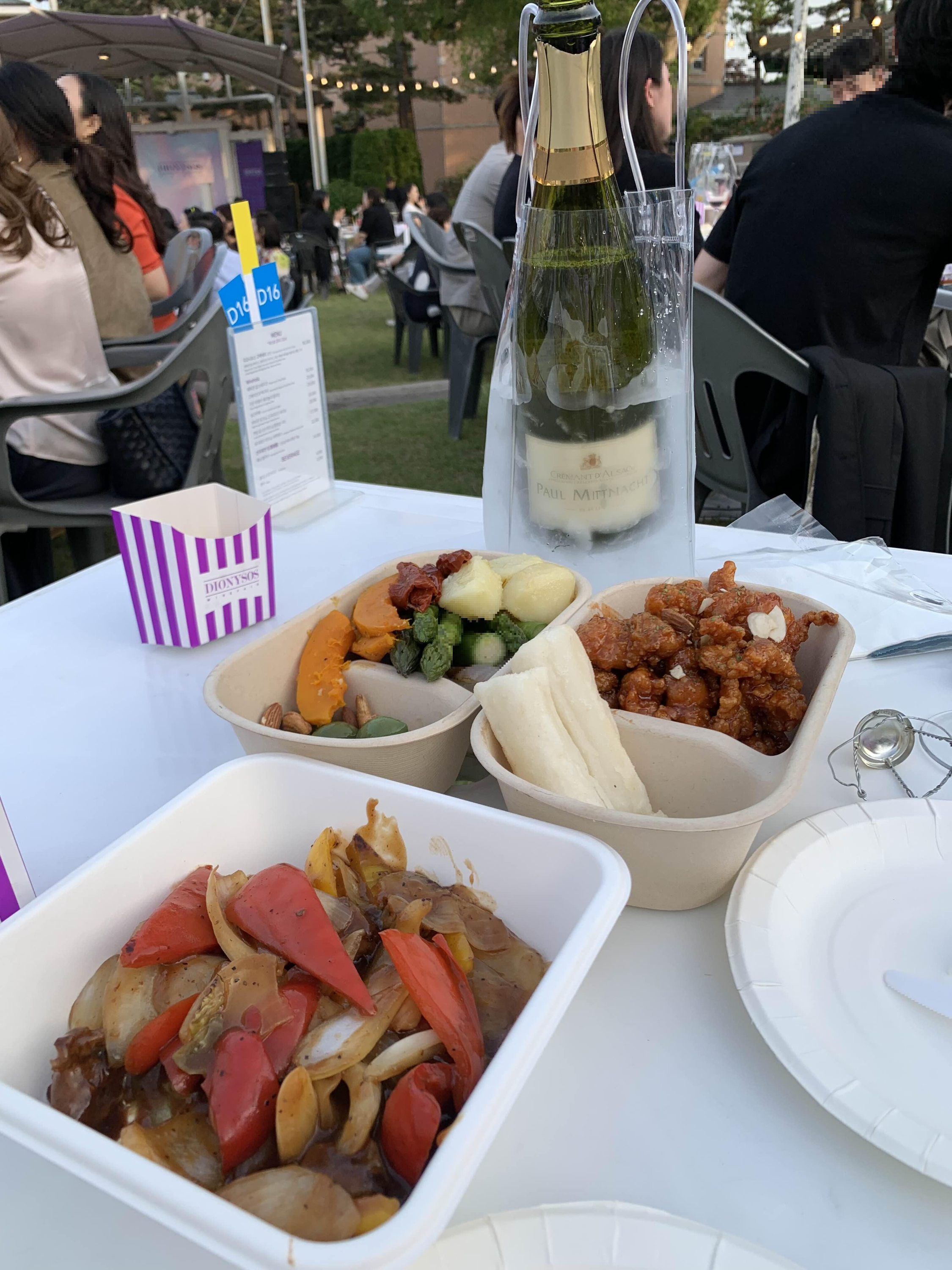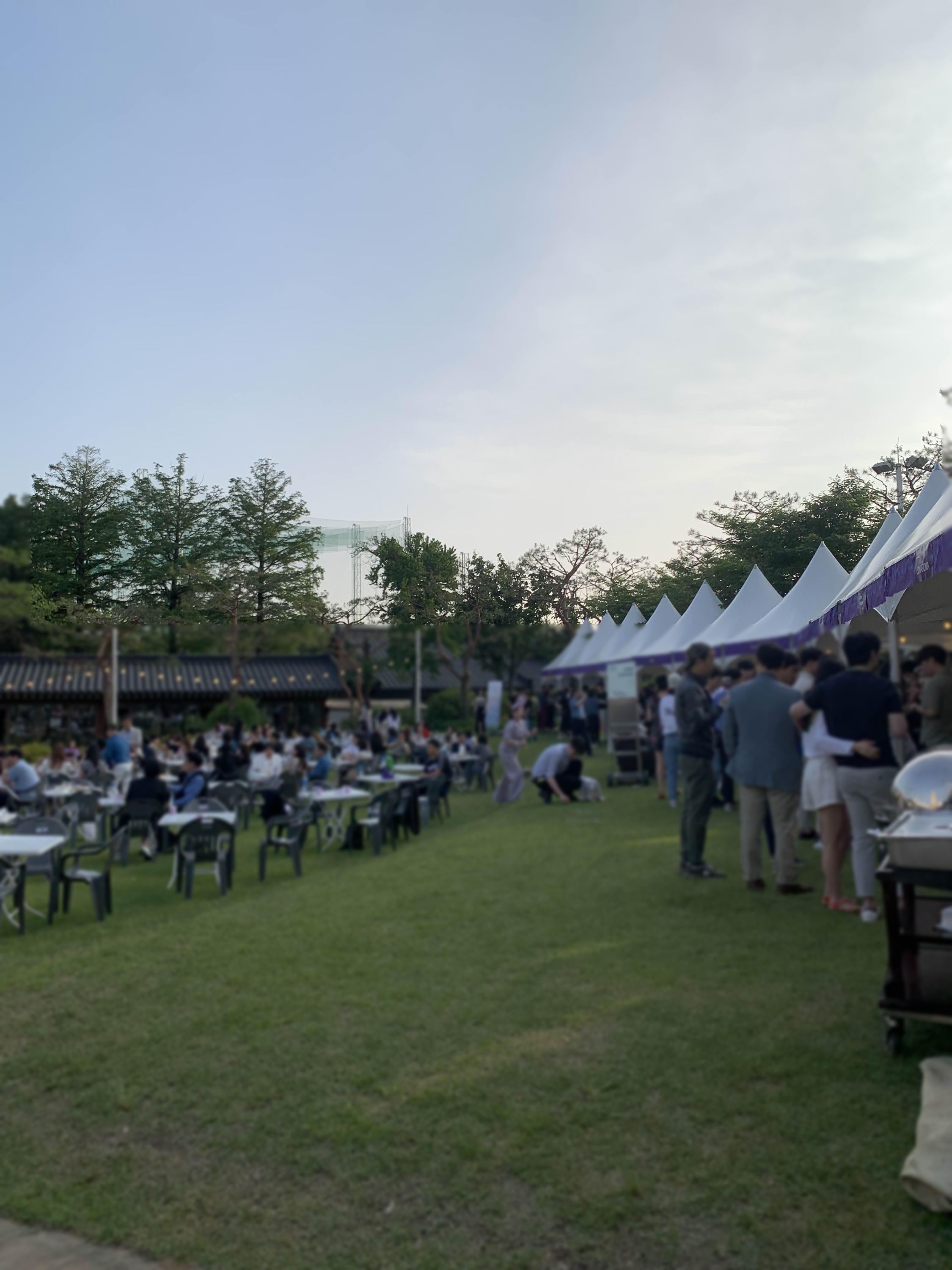 크레망을 칠링 버킷에 넣어서 음식과 함께 먹었습니다. 샴페인을 사기에는 너무 향을 즐길 수 없는 환경이었고, 아무래도 이런 행사에 왔으니 좋은 것을 먹고 싶었습니다. 마침 다양한 종류의 크레망이 구비되어 있었고, 시음해 본 크레망 하나가 샴페인 뺨치게 맛있어서 선택했습니다. 날씨와 분위기, 맛 모든 게 완벽했고, 피크닉 온 분위기에서 즐겼습니다.