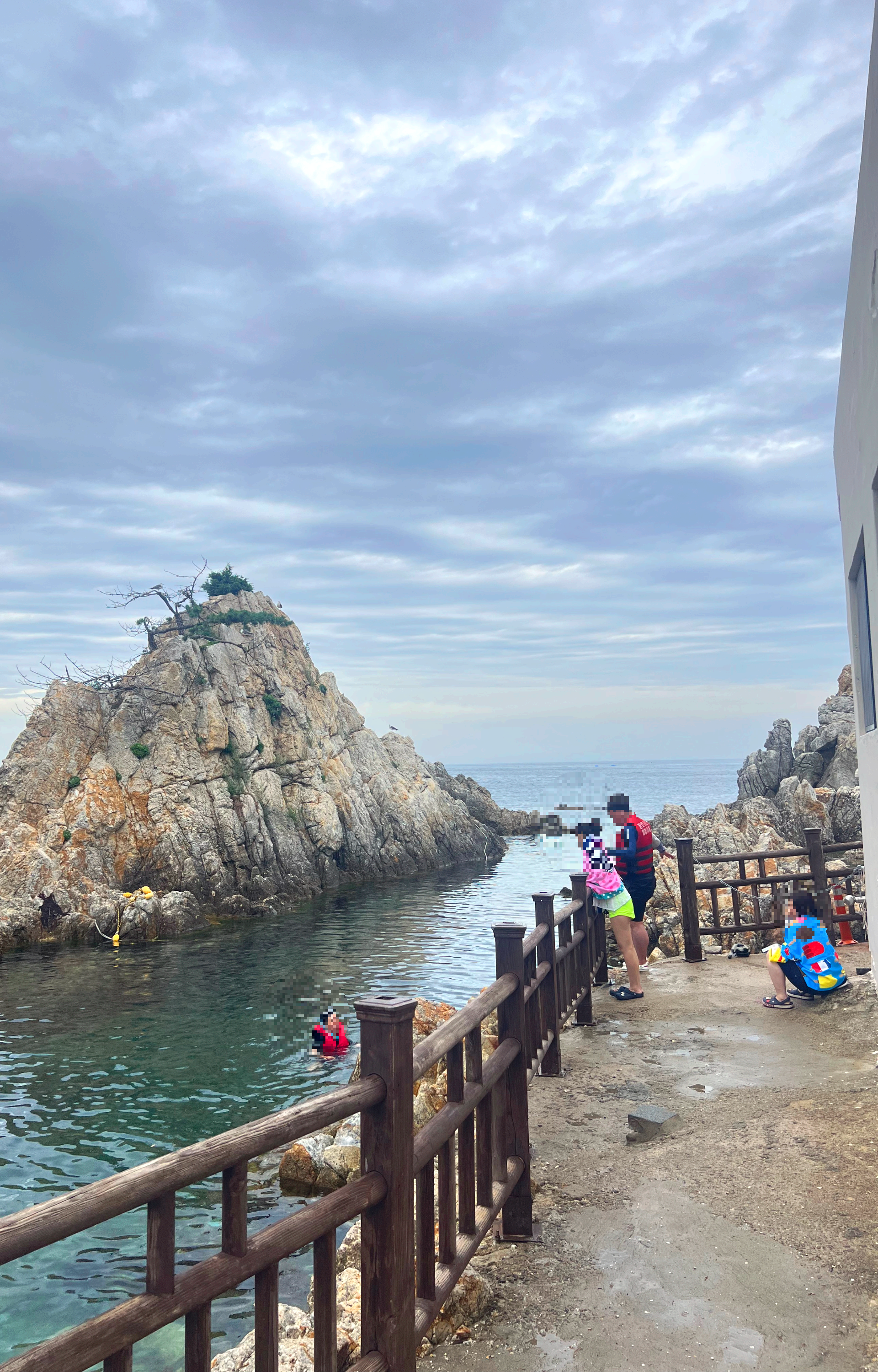 금요일에 방문한 장호항은 가족 단위 방문객이 많았고, 바다로 들어가는 입구 쪽에는 아이들이 주로 놀고 있었습니다.