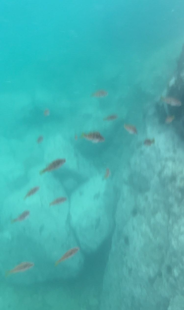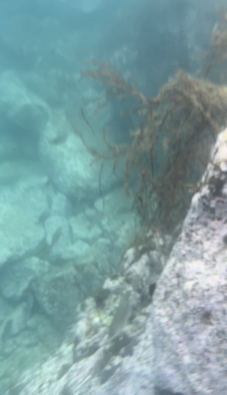 돌이 많아서 그런지 맑은 바다였습니다. 치어 떼와 우럭 같은 꽤 큰 물고기도 있습니다. 생각했던 것보다 물고기, 성게 등 바닷속에 볼거리가 많아 좋았습니다. 방수팩 핸드폰으로 촬영한 물속입니다. 물고기 떼를 보는 재미가 있습니다.