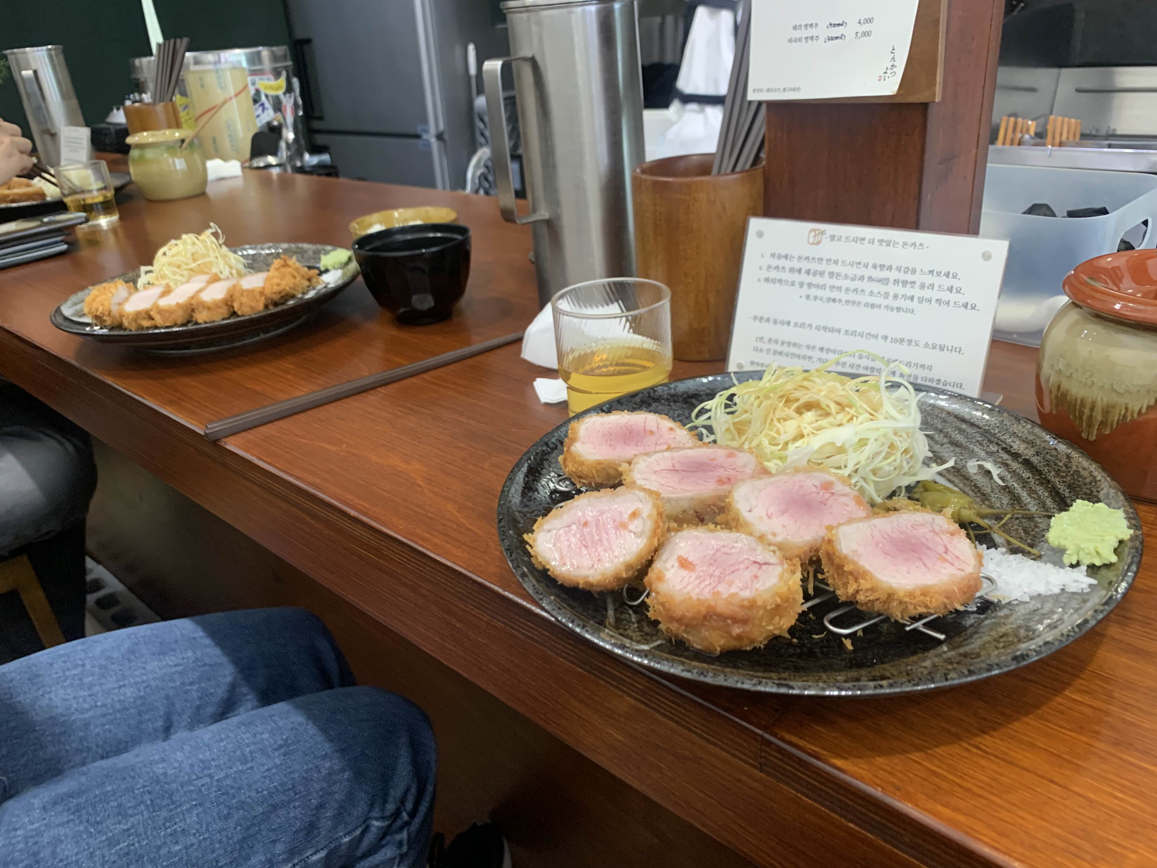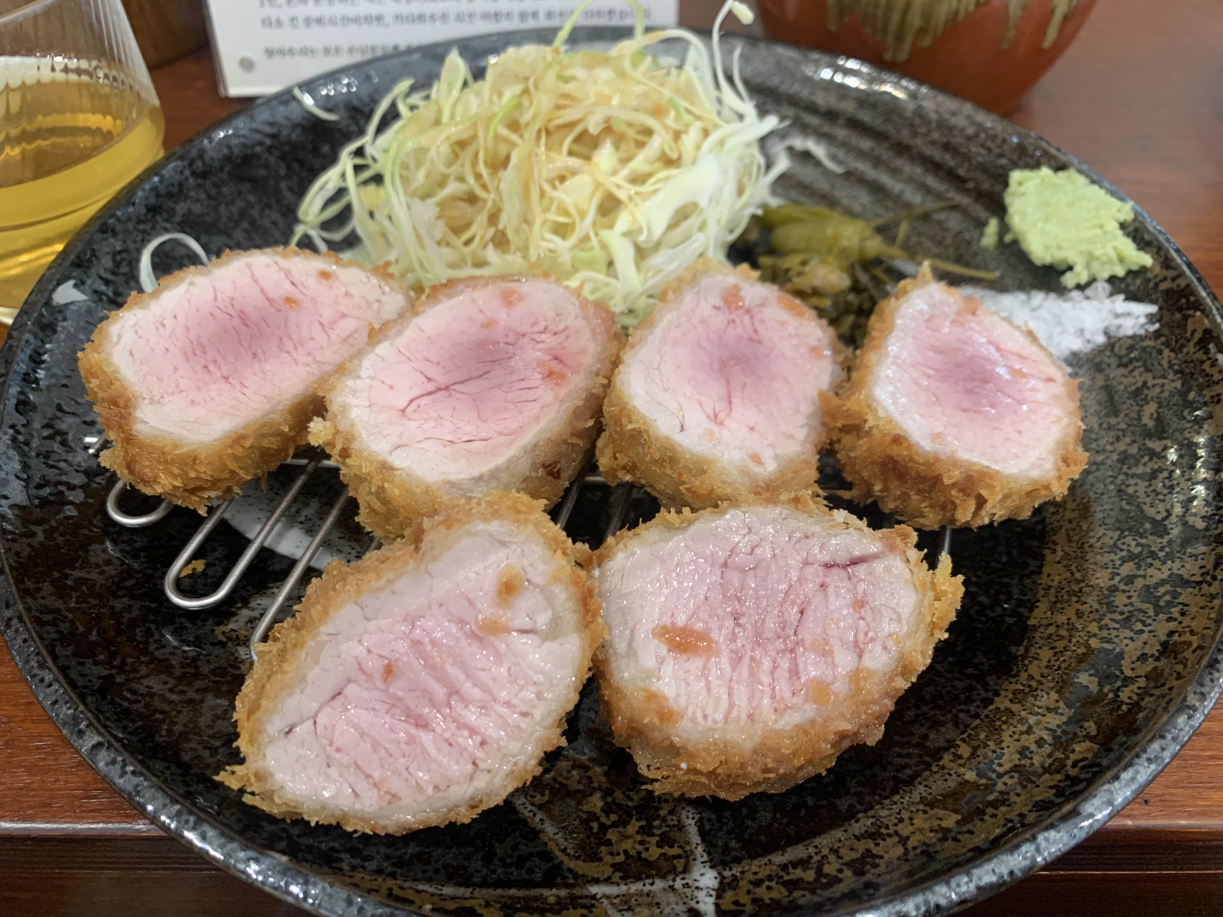 돈까스도 돼지고기의 장점만 살린 살린 풍미 있는 맛이었습니다. 바쁘지만 타이머와 레스팅 시간까지 계산해서 서빙되고 있었습니다.
