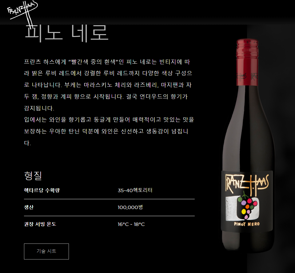 오늘의 와인 : 프란자스 피노네로 2019( Franz-Haas, Pinot Nero)