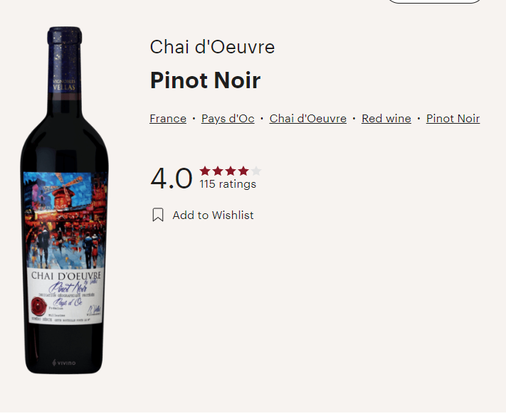 오늘의 와인 : [프랑스/레드] 쉐 되브르 피노누아 2021 (Chai d'Oeuvre Pinot Noir)