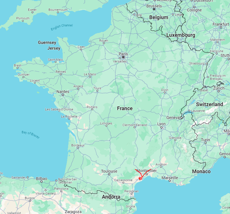 랑그독 지역은 저기 빨간색 동그라미 지역인데, 프랑스 남부에 위치해 있다.