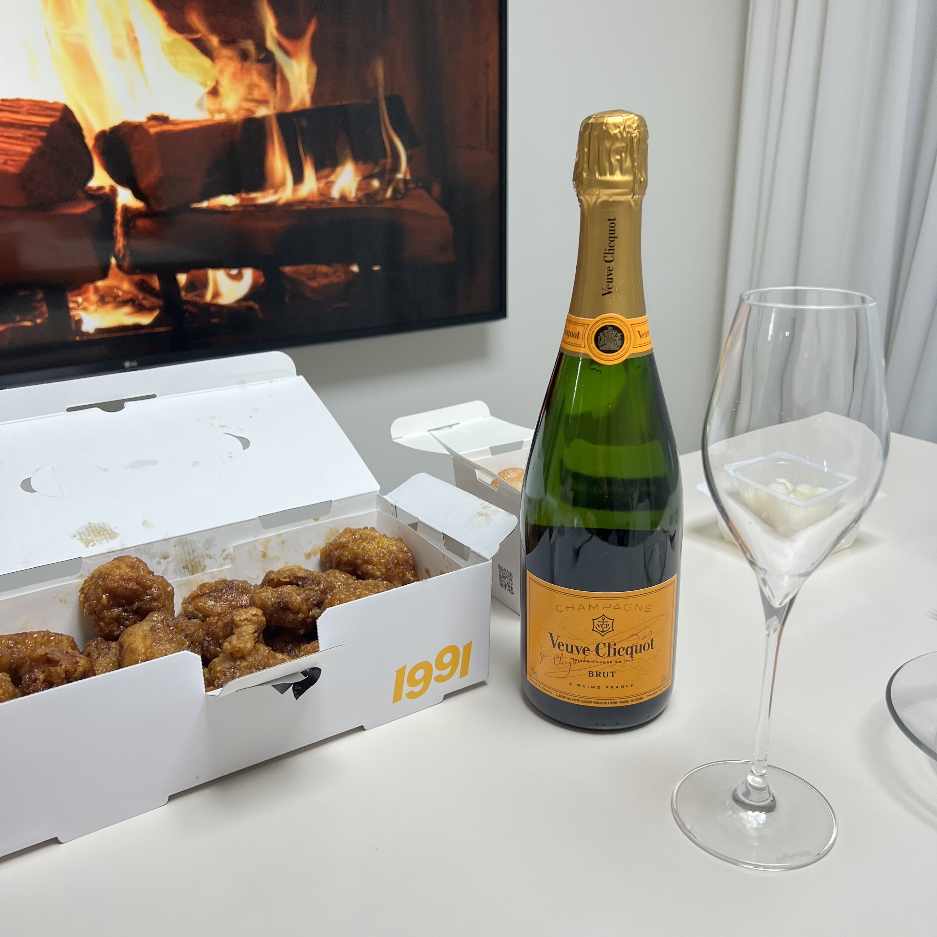 최근에 여의도에 생긴 와인바 중에서 뵈브 클리코 수입사와 협업? 같은것을 해서 매장에서 10만원 정도에 판매했었다.
