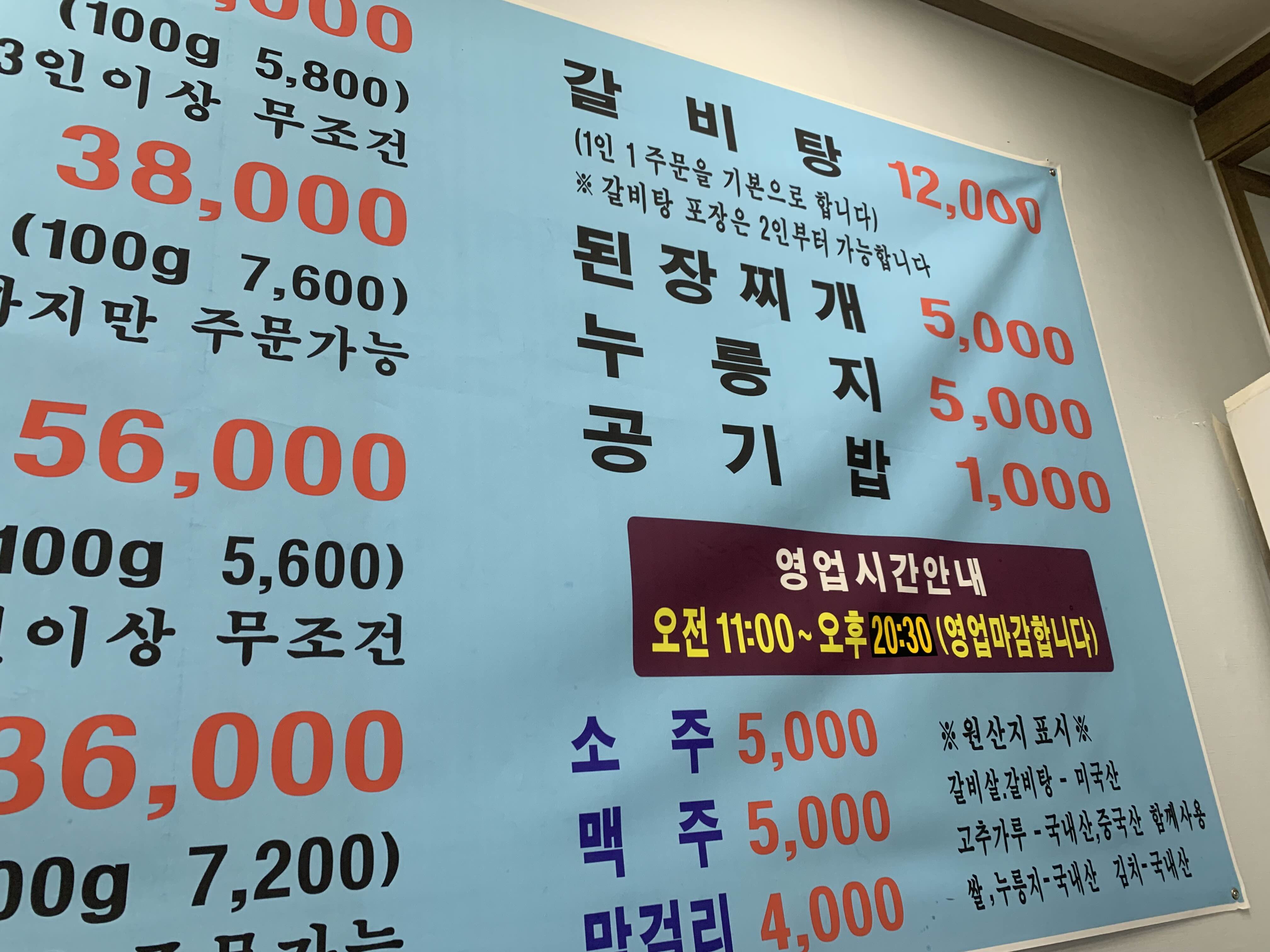 2명이서 먹기에는 갈비탕 및 소갈빗살 모두 양이 많은 편이고, 4인 가족 단위로 소갈빗살 1kg에 갈비탕 한 그릇을 주문하면 양이 딱 맞을 것으로 생각됩니다.