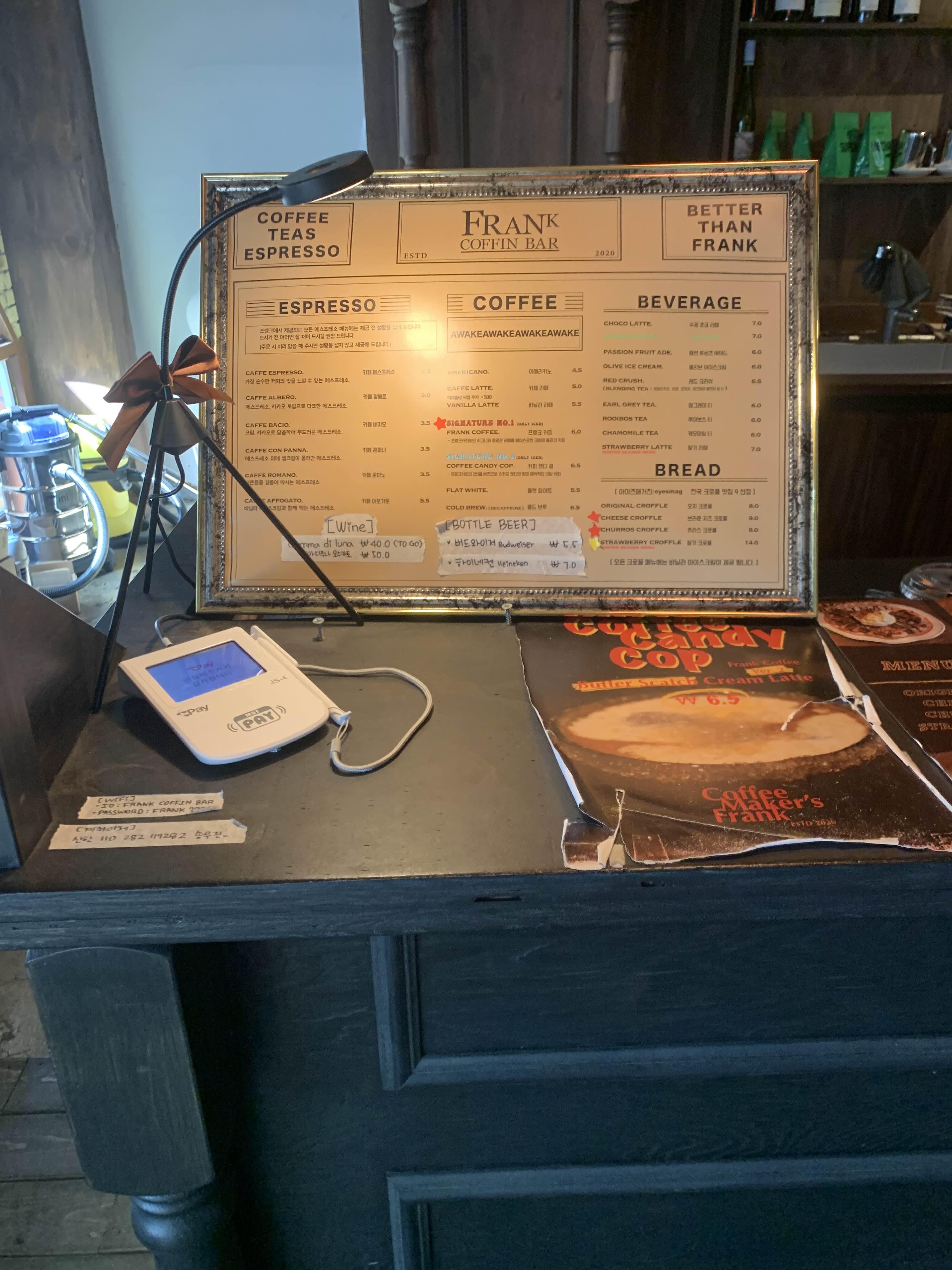 프랭크 커피는 커피 위에 거품이 올라가는 달달한 커피였습니다. 부드러운 거품 맛을 좋아하는 사람에게 추천합니다.