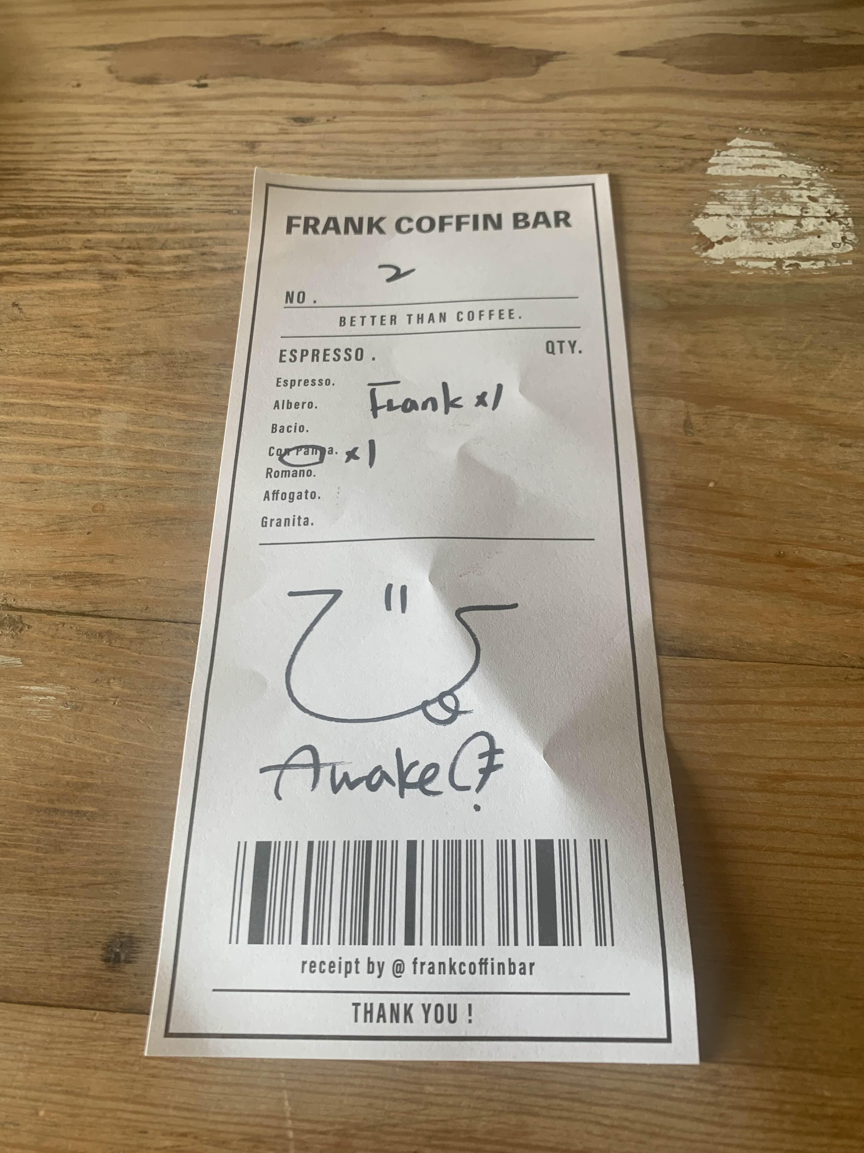 추천 메뉴인 프랭크 커피와, 에스프레소 한 잔을 주문했습니다.