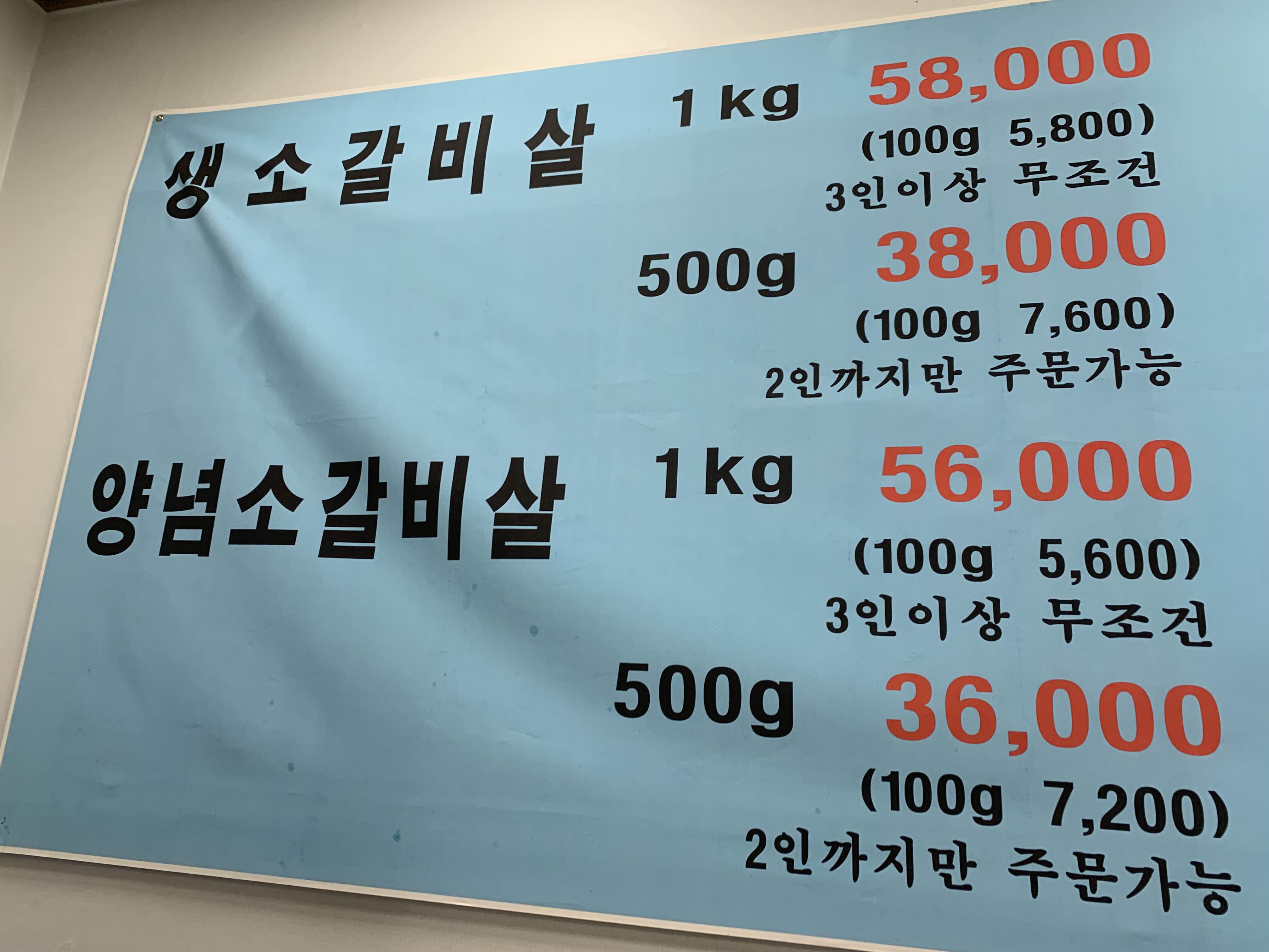 미국산 생, 양념소갈빗살도 다른 음식점과 비교해서도 합리적인 가격입니다.